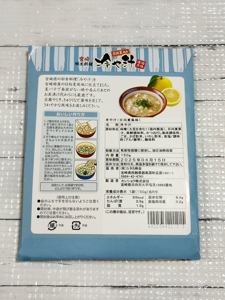冷や汁商品は数多くありますが、パッケージが爽やか、日向夏風味ということで購入してみました。