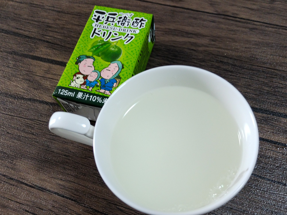 小さなお子さんが飲むのにちょうど良さそうな内容量、味わいもスキッとした平兵衛酢・・・ではなくて、柔らかな甘さと柑橘の風味でお子さま向き。元の平兵衛酢を知っている身としては爽やかさが物足りない感じです。