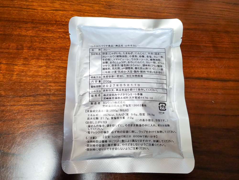 しっかり200g、牛肉も野菜もゴロゴロと入っているのが確認できます。食べ応えもあり、甘めの味わいは万人受けタイプ。ほっとするカレーを食べたいときにオススメです。